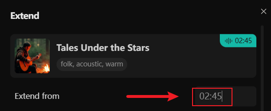 Start by selecting the music clip you’d like to extend. Once you’ve chosen the clip, simply click the “EXTEND” button.
